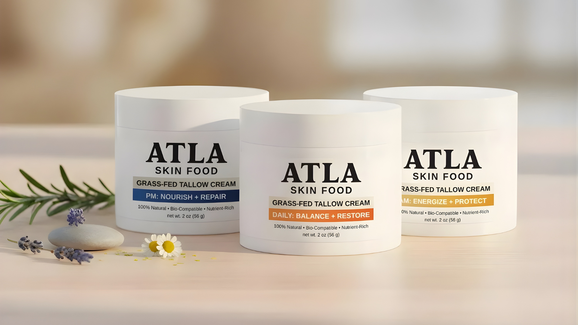 Our grass-fed tallow mirrors human skin lipids for deep, calm, lasting nourishment—without the endocrine-disrupting fillers, synthetic fragrance, or 20-step rituals.