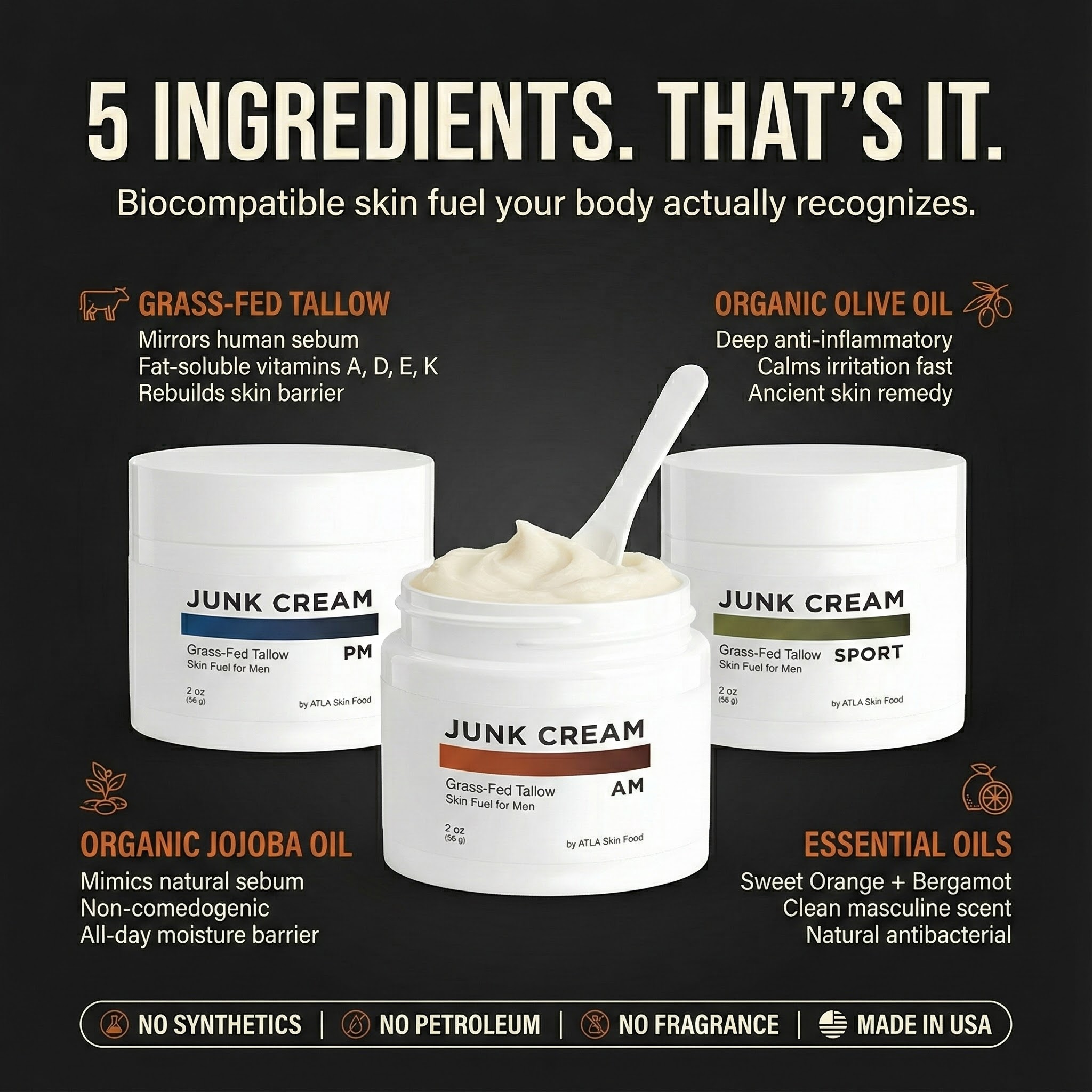ATLA JUNK CREAM - Grass-Fed Tallow Skin Fuel for Men